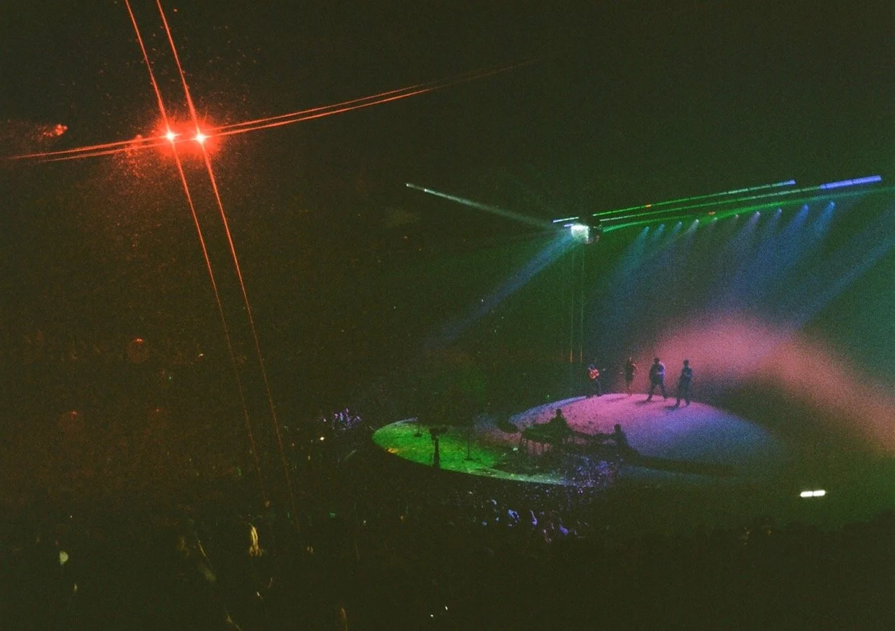 Clockwise starting upper left: Kacey Musgraves at Moody Amphitheater; Samantha Grasso in a blood orange jumpsuit; Samantha Grasso in a blue chambray shirt; Austin skyline in grayscale; Tulips in Chicago; Disco balls shining during Santigold at Austin City Limits Music Festival.